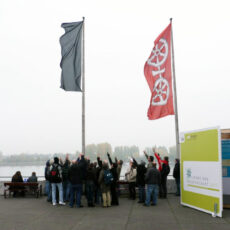 Und so sieht sie aus, die schwarze Trauerflagge, die die Rathaus-Menschen gestern gehisst haben, um gegen Fluglärm zu protestieren und speziell zur Trauer um unsere liebe Kanzlerin, die heute zur Einweihung mit ihrer Regierungsmaschine auf der Nordwestlandebahn aufgesetzt ist. Selbstverständlich forderte unser Fotograf die verdatterte Touristengruppe dazu auf, geschlossen und auf Zuruf die behandschuhten Patschehändchen […]