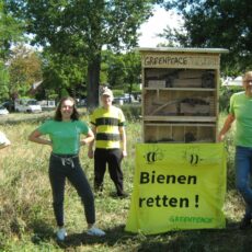 Greenpeace Mainz-Wiesbaden errichtet ein neues Insektenhotel. An der Grenze zwischen Hartenberg/Münchfeld und Mombach, wo sich Mainzerstraße, An der Allee und Am Fort Gonsenheim kreuzen, konnte heute der Holzbau aufgestellt werden. In mehrtägiger Arbeit haben Ehrenamtliche einen Lebensraum geschaffen, der vor allem unterschiedlichen Wildbienenarten ein artgerechtes Zuhause bieten soll. In Deutschland stehen bereits mehr als die […]