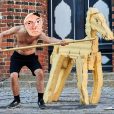 Mit dem Zentralcafé, einer kleinen Containerlandschaft auf dem Tritonplatz, hat Grenzenlos Kultur nun auch seine „Come-Together-Area“, als geselligem Treffpunkt nach allen Vorstellungen, als Partyort für die Democratic Disco und als zusätzliche Spielstätte. Als solche wird sie intensiv und würdig von den Berliner Schaumstoffpuppen-Helden Das Helmi, verstärkt durch weitere Schauspieler*innen und Musiker*innen, eingeweiht.