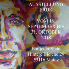 Die Bar jeder Sicht zeigt Arbeiten des französischen Künstlers Erijk Henriot. In Acryl und als Collagen verschiedener Techniken übersetzt er die Welt, Menschen und Dinge die ihn umgeben in abstrakte Farbkompositionen. Die Ausstellung ist bis zum 31. Oktober zu sehen.