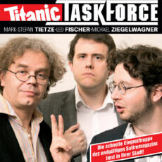 Leo Fischer, Mark-Stefan Tietze und Michael Ziegelwagner sind die schnelle Eingreiftruppe des endgültigen Satiremagazins TITANIC: Wie der Wind sind die drei zur Stelle, wenn irgendwo Not herrscht, wenn ein Baum gefällt, ein Sohn gezeugt oder ein Bier ausgetrunken werden muss. Mit komischen Texten und seltsamen Bildern bringen sie die Krisenherde dieser Welt zum Überkochen.