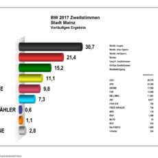 Das Mainzer Ergebnis ist fast genauso wie das Bundesergebnis. Mit dem Unterscheid, dass die Grünen bei uns 15 % haben und die AfD mit 7 % auf Platz 6 landen. Das Direktmandat (s.u.) geht an Ursula Groden-Kranich (CDU). Der SPD-Herausforderer Carsten Kühl kommt auf 28 % und kann damit den Wahlkreis nicht holen. Er wird […]