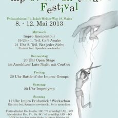 Das Mainzer Impro-Theaterfestival startet in die zweite Runde. Den Auftakt bildet am 8. Mai eine Impro-Kneipentour, die um 19 Uhr im Café Awake beginnt und ab 21 Uhr in der Bar Jeder Sicht ausklingt. Donnerstag bis Samstag gibt es jeden Abend verschiedene Impro-Shows im P1 Gebäude an der Uni zu sehen, außerdem werden dort tagsüber […]