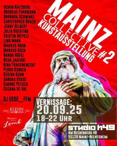 Zum fünften Geburtstag des Studios H49 (Am Hechenberg 49) findet die zweite Ausgabe der Kunstausstellung Mainz//Collective statt. Nach dem großen Erfolg im letzten Jahr präsentieren Mainzer Künstlerinnen und Künstler erneut ihre Werke, um die regionale Kunstszene weiter zu vernetzen und zu zeigen, was die Stadt kreativ bewegt.