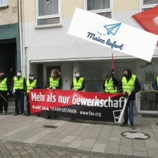 Mit Banner und Fahnen zog in der vergangenen Woche die Freie Arbeiterinnen- und Arbeiter-Union (FAU) vor die Zentrale von „Mainz liefert“. Dem Unternehmen wirft die !anarchosyndikalistische“ Gewerkschaft die Verletzung von fundamentalen Rechten der Angestellten vor. Der Lieferservice weist die Vorwürfe zurück.