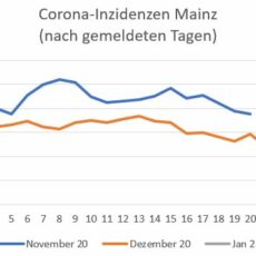 Mainz hält mit einer Inzidenz von 99,6 am 2.1.2021 (95,6 am 3.1. & 96,5 am 4.1. – gemeldet Land RLP) einen Rekord-Tiefstand, erstmalig wieder unter 100 – verglichen mit den letzten Wochen. Zuletzt gab es eine derartige Inzidenz Ende Oktober. Doch aufgrund der aktuellen geringen Testungen stehen die regulären Zahlen noch in den nächsten Tagen […]