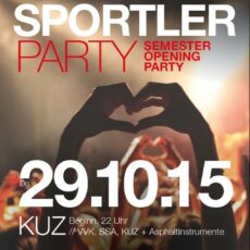 Das Semester hat wieder begonnen und wieder treffen sich heiße Sportstudenten im KUZ zum trinken und kopulieren tanzen. In der großen Halle gibt es einen musikalischen Mix, in der kleinen Elektro. Für den Hunger zwischen den Tanzeinlagen steht draußen ein Truck mit veganem Essen. Start um 22 Uhr.