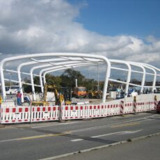 Die neue Bushaltestelle in Kastel mit den weißen Bögen und Zeltdach (von machen auch Beduinenzelt genannt) wird am Freitag, 9. Dezember eröffnet. Ab dann fließt der Verkehr wieder normal 4spurig über den Brückenkopf.