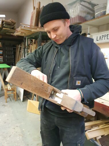 Mit den Händen arbeiten und am liebsten mit anderen zusammen: Der Werdegang von John Fellhauer lief nicht ganz gerade auf das zu, was ihm am meisten Freude bereitet. Jetzt verdient er seinen Lebensunterhalt damit. John hat zwei Berufe. Er ist Tischler und Diplom-Industriedesigner. Die Ausbildung zum Schreiner hat er in Geisenheim, das Studium an der Hochschule in Darmstadt absolviert. Beides liegt in Hessen. John sagt es fast entschuldigend. Ist aber nicht schlimm. Längst ist er in Mainz verwurzelt. Den Ausflug in die – eher theoretische – Welt an der Hochschule Darmstadt möchte er nicht missen. Es blieb ein Ausflug. Das akademische Umfeld ist nicht so seins. Er will nicht nur planen, sondern auch umsetzen, ein Ergebnis sehen. Mit den Händen arbeiten, pragmatisch und lösungsorientiert: „Alles andere macht mich nicht glücklich.“